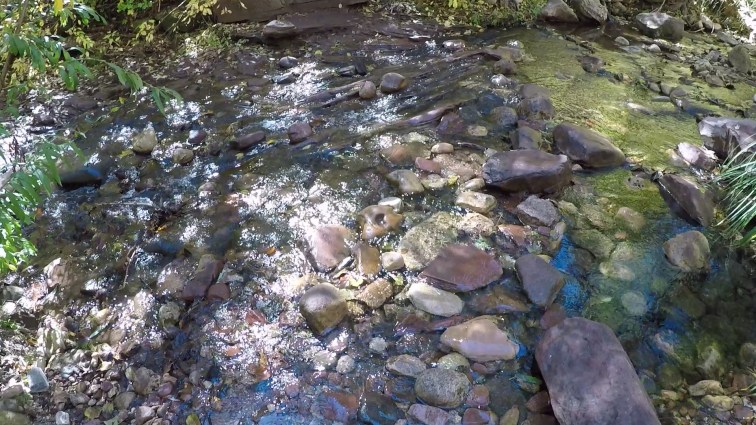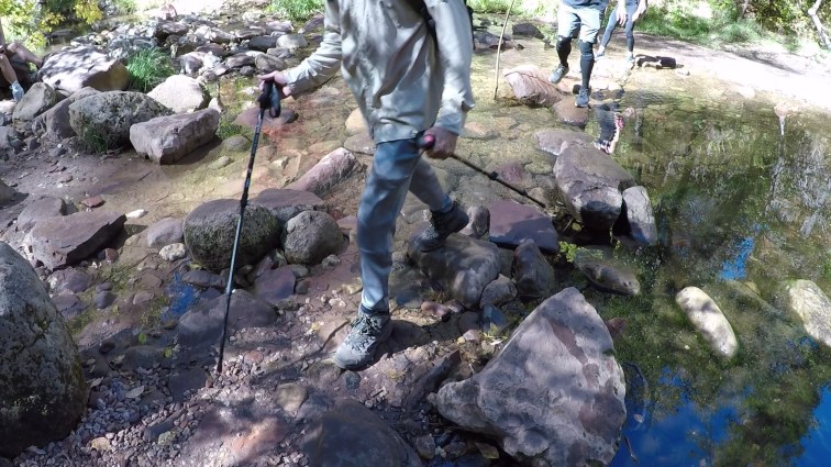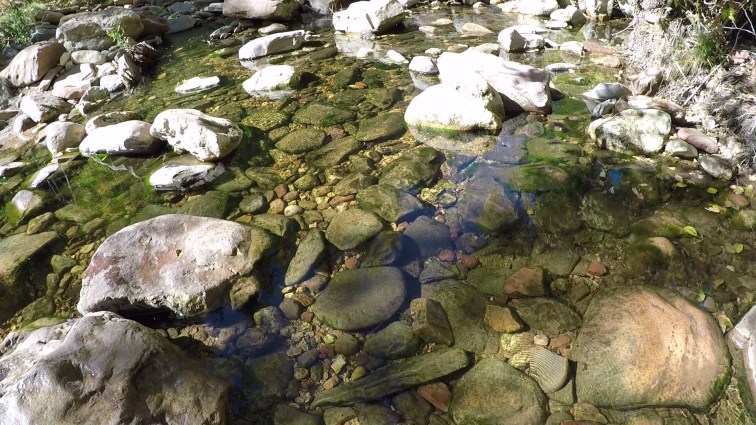As the trail meandered back into the shade of the canyon it became delightfully cool and there was a wonderful scent of pine forest mixed with autumn leaves. The creek provided a freshness and feeling of serenity. If it wasn’t for the many conversations of the other hikers on the trail, I would have easily slipped into a meditation walk, as I often do when hiking in nature. I found myself slipping away to secluded spots down little side trails to get a few moments of solitude. However, that’s not to say I resented the other hikers; most of the people were very friendly and greeted me warmly. I enjoyed meeting them and the way the trail crossed the creek many times creating little meeting spots as people waited their turn to cross. I was glad I wore my old shoes as it was near impossible not to accidentally get wet feet while hopping from one slippery stone to another.